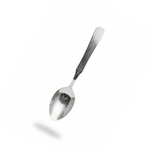 Stainless steel table spoon, silver dinner spoon, ribbed handle cutlery, modern stainless steel silverware, premium table spoon, mirror-polished dinner spoon, Textured handle spoon, elegant silver soup spoon, professional-grade cutlery, rust-resistant table spoon, dishwasher-safe silverware, contemporary dining utensils.