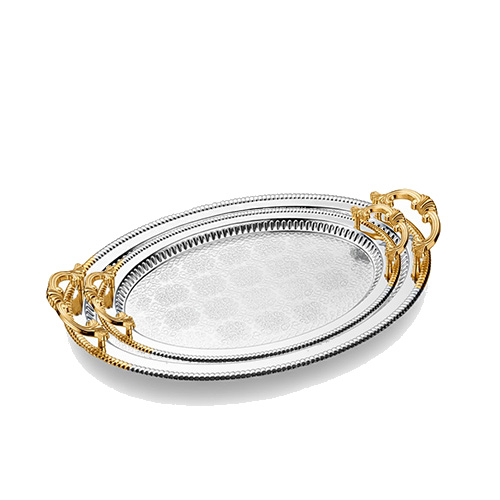 2138G Luxury 2-Piece Oval German Silver Serving Platter Set | Ornate Engraved Metallic Tea & Drinks Trays