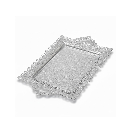 314-4-11 Classic Silver Metal Serving Tray with Handles | Ornate Filigree Rectangular Vanity Platter