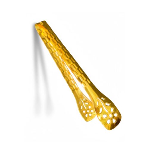 Gold hammered serving tongs, stainless steel gold food tongs, luxury gold buffet utensils, textured gold kitchen tongs, gold-plated appetizer server, Modern gold serving tools, hammered metal food tongs, gold salad tongs no motif, professional gold catering tongs, elegant gold pastry server, gold-plated wedding utensils.