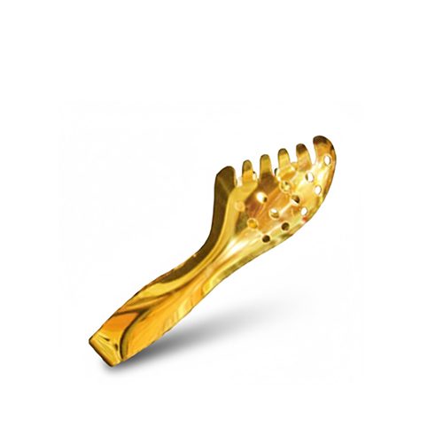 Gold serving tongs, stainless steel buffet tongs, luxury gold kitchen utensils, scalloped food server, decorative gold salad tongs, gold-plated appetizer tongs, Modern gold serving tools, textured gold kitchen tongs, gold-plated wedding utensils, professional catering tongs, elegant gold pastry server, rust-resistant gold tongs.