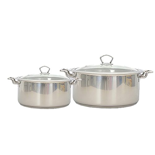 Alpha Cuisine 2-Piece Commercial Giant Stockpot Set 36cm & 40cm Industrial Stainless Steel Pots with Glass Lids