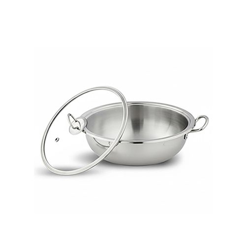 Dual Handles & Lid: Features sturdy, riveted side handles for secure handling, along with a tempered glass lid for moisture retention when slow-simmering curries.