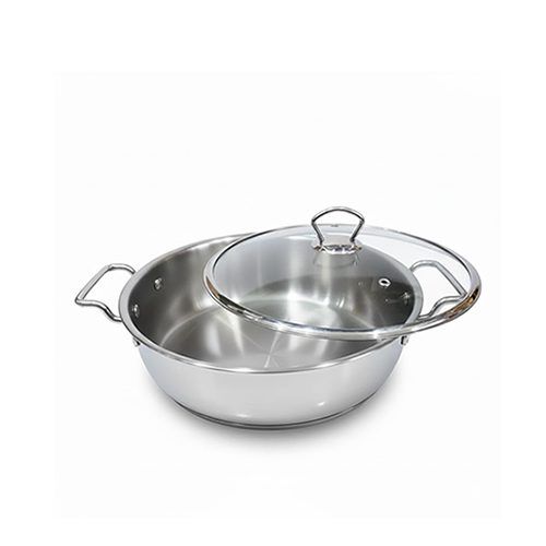 PKW-1494 30cm Commercial Hybrid Stainless Steel Shallow Pot with Lid | Extra Large Braiser & Chef Skillet