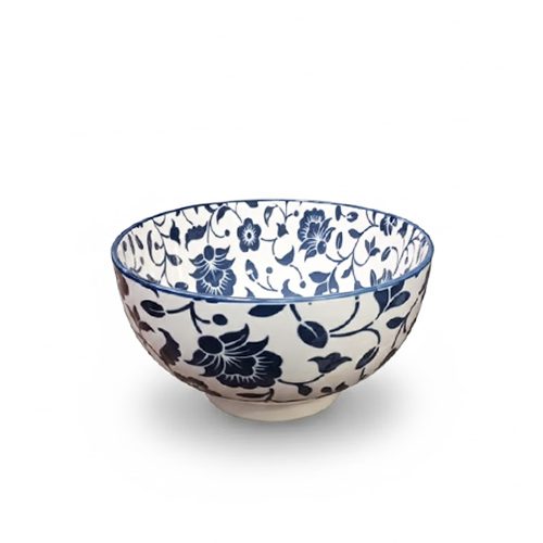 BF-204 8-Inch Blue Floral Porcelain Serving Bowl Large Round Deep Salad & Pasta Bowl for Family Style Dining