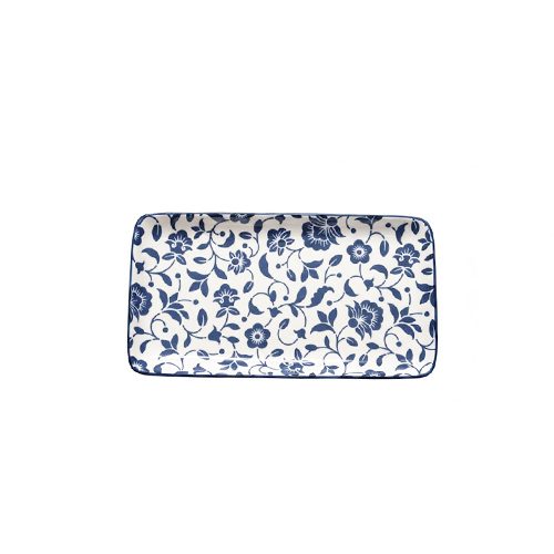 9 inch rectangular platter, blue floral serving tray, small porcelain appetizer platter, rectangular ceramic sushi dish, Blue and white floral dinnerware, small porcelain tray for parties, chip-resistant porcelain serving ware, elegant floral bread tray, mini decorative serving platte, Rectangular dinnerware, blue vine pattern server, high-quality porcelain platter, dishwasher safe serving tray.