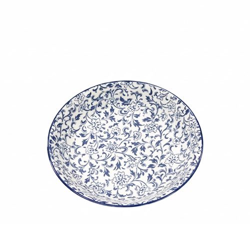 BF-308 8-Inch Blue Floral Porcelain Deep Quarter Plate Round Ceramic Side Plate for Pasta, Salad & Soup | Elegant Wide-Rim Dish