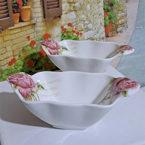 Elegant Round Serving Bowl Set | Ceramic Floral Bowls | Serving Bowls