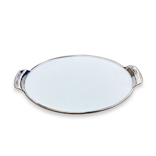 • Elegant Silver Rim: A delicate metallic border follows the tray’s edges, providing a refined contrast to the brilliant white porcelain.
