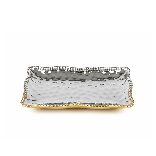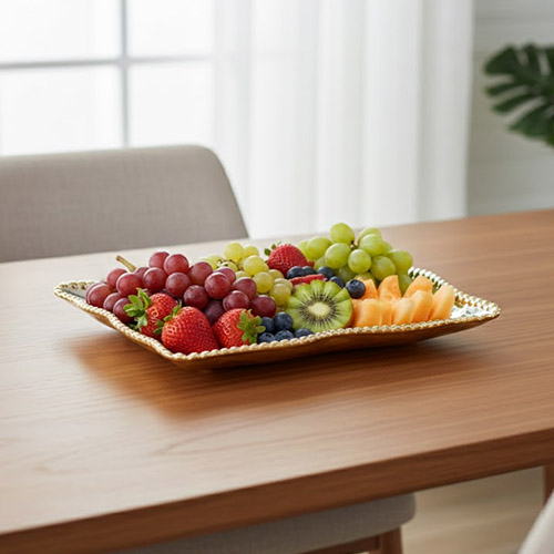 Luxurious Metallic Accents: The platter is framed by elegant metallic accents, often featuring sophisticated beaded or scalloped detailing for an upscale look.