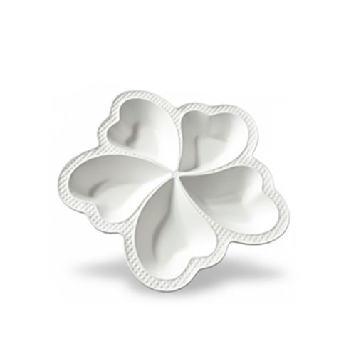 5-section porcelain snack tray, flower-shaped dry fruit platter, petal design serving dish, luxury white porcelain appetizer tray, large divided snack bowl, Floral condiment server, white ceramic party platter, wedding buffet serving tray, elegant nut and candy dish, luxury home entertaining essentials, multi-compartment porcelain dish.