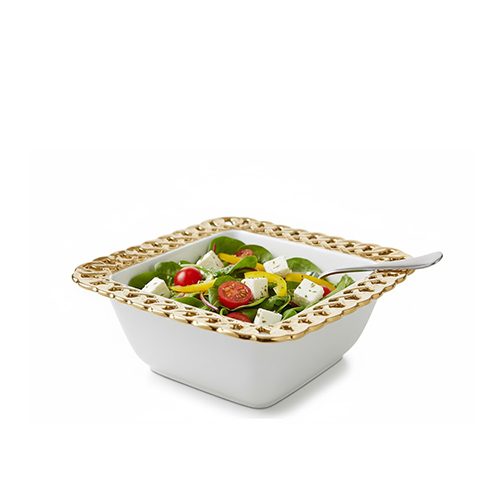 BJ 82 Presto Luxury White Ceramic Salad Bowl Elegant Square Porcelain Serving Dish with Gold-Plated Ornate Latticed Rim