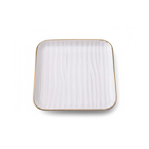BJ 92 Presto Luxury Square Ceramic Tray Plate 12-Inch White Porcelain Serving Platter with Gold-Rimmed Edges and Wave-Textured Surface