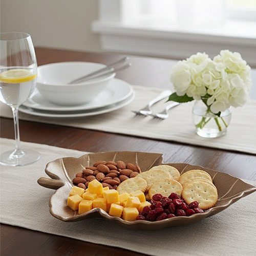 Find the perfect piece for all your hosting needs with these versatile bronze-gold leaf serving dishes. The durable ceramic construction and warm metallic hue (ranging from brownish-gold to bronze) make them ideal for Fall, Thanksgiving, and Christmas entertaining. Use them for serving charcuterie components, nuts, candies, or chips. They also make an exquisite and memorable hostess gift or housewarming present.