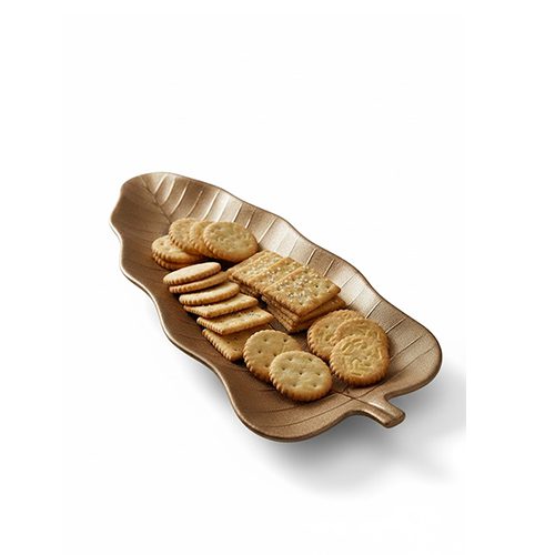 DX-717 Ceramic Cracker & Snack Platter | Versatile Long Serving Dish in Bronze Gold