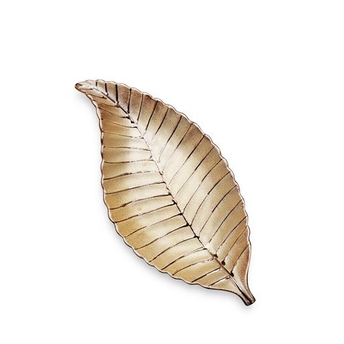 Introduce a touch of nature-inspired elegance to your home with this stunning golden ceramic platter. The intricate leaf vein detailing and rich metallic hue make it an eye-catching decorative accent for your dining table, shelf, or entryway. Use it to showcase candles, hold potpourri, or simply enjoy its beauty as a stand-alone tabletop sculpture. A versatile piece of luxury home decor that seamlessly blends artistry and style.