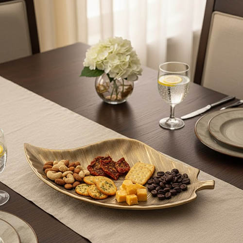 DX-731 Rustic Bronze-Gold Ceramic Leaf Serving Platter Collection | Warm Metallic Tableware & Decor