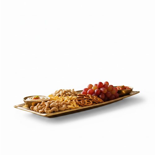 DX-741 Sleek Silver Charcuterie Board Platter | Narrow Ceramic Tray for Gourmet Snack Presentation