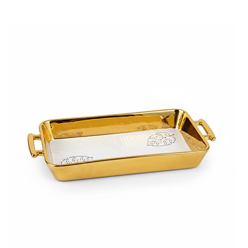 FX 304 Presto Luxury Gold Rectangular Ceramic Serving Bowl Elegant Porcelain Deep Platter with Handles for Roasts, Pasta, and Table Decor