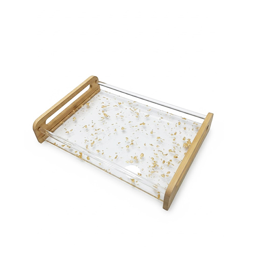 566-6 Glamorous 2-Piece Serving Tray Set: Wood Frame & Glitter Acrylic – Gold or Silver Luxury Decor
