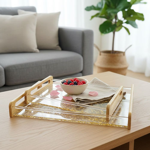 Glitter Serving Tray, Acrylic Tray Set, Gold Glitter, Silver Glitter, Luxury Home Decor, Nesting Trays, Coffee Table Tray, Glam Decor, Wood and Acrylic.