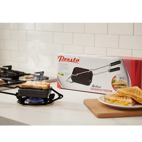 Presto Sandwich Toaster, Stovetop Grill, Panini Press, Toastie Maker, Non-Stick Grill, Gas Stove Toaster, Camping Sandwich Maker, Manual Press, Grilled Sandwich, Kitchen Gadget.