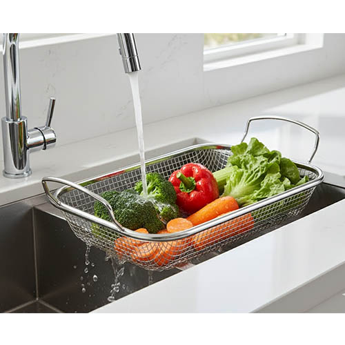 Hands-Free Rinsing: The adjustable handles securely span your kitchen sink, allowing you to thoroughly wash berries, grapes, apples, lettuce, and more under running water—no more holding a bowl!