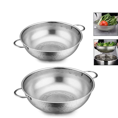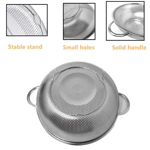 Stainless Steel Colander, Colander Basket, Kitchen Strainer, Stainless Steel Sieve, Micro-Perforated, Stainless Steel (SS), Rice Strainer, Pasta Drainer, Vegetable Washer, Durable Kitchen Tool, Steamer Basket.