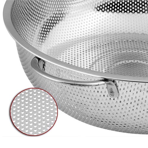 Micro-Perforated Precision: Unlike traditional large-hole strainers, our small, tightly spaced holes (as seen in the image) drain water quickly and completely without allowing delicate foods like berries or washed rice to pass through.