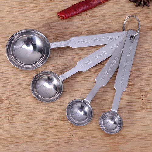 This set typically includes the four most common sizes: 1 Tablespoon, 1 Teaspoon, 1/2 Teaspoon, and 1/4 Teaspoon.