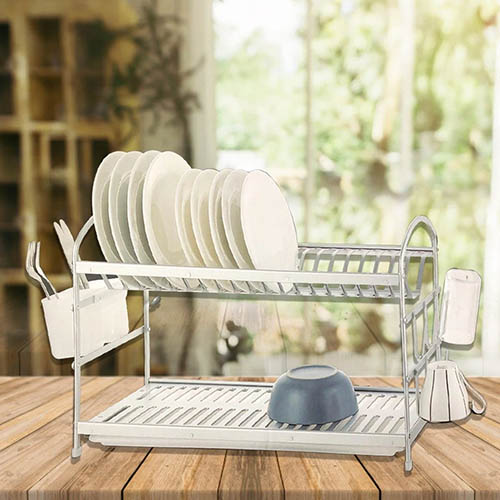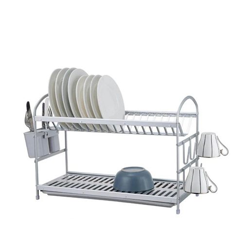 PKW-1156 Premium Aluminum 2-Tier Dish Drying Rack | Rust-Proof Kitchen Dish Drainer with Cutlery Holder and Drip Tray | Space Saving Dish Rack