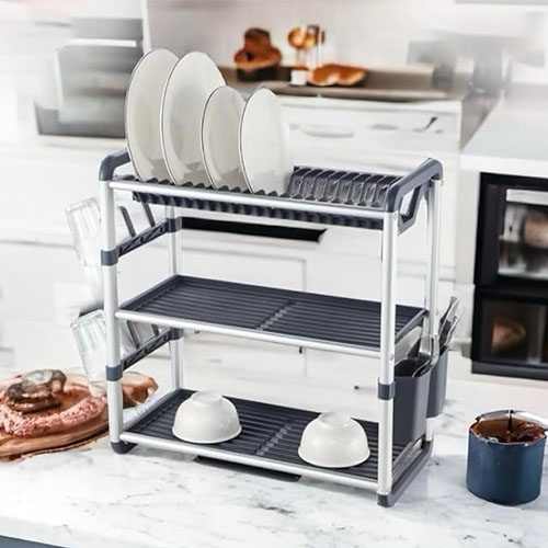 3-Tier Dish Rack, Large Capacity Dish Drainer, 3 Layer, Aluminium Dish Rack, Presto, PP Plastic, Rust-Proof, Kitchen Organizer, High Capacity, Dish Drying Rack.