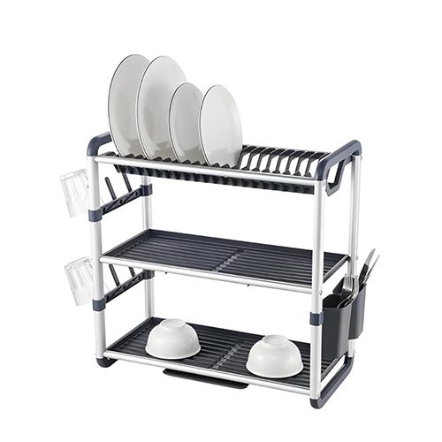 PKW-1159 Presto 3-Tier Aluminum + PP Dish Drying Rack | Large Capacity 3-Layer Dish Drainer with Cutlery & Cup Holders | Space-Saving Kitchen Organizer