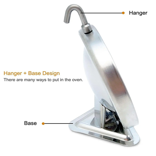Dual-Display Design: Features a versatile integrated hook for hanging from oven racks and a stable standing base for placement on any flat surface inside the oven.