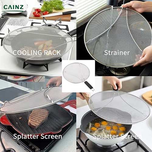 Versatile 4-in-1 Design: This doom net isn’t just a splatter guard; it functions as a cooling rack for baked goods, a steamer, and even a fine-mesh strainer for rinsing vegetables.