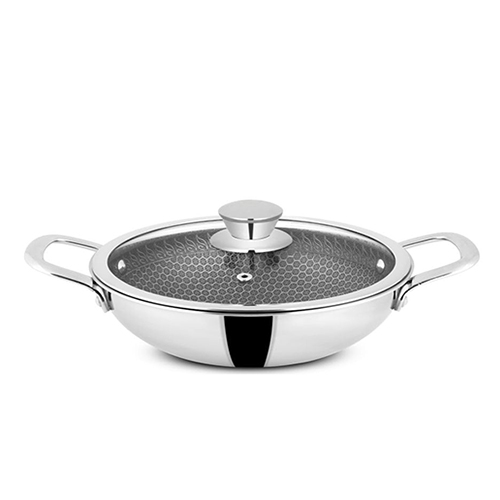 PKW-1489 32cm Commercial Mega Hybrid Stainless Steel Honeycomb Kadai with Lid | X-Large Nonstick Karahi
