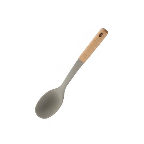 PKW-HY-788 Premium Silicone American Spoon with Natural Wood Handle | Heat-Resistant Non-Stick Solid Cooking Spoon | Ergonomic Professional Kitchen Utensil