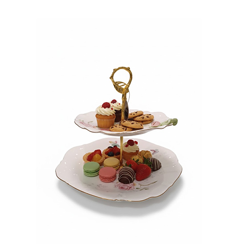 2-Tier Pastry Stand,Ceramic Dessert Tower,Floral Cupcake Display,Vintage Porcelain Cake Stand,Shabby Chic Serving Ware,High Tea Tiered Tray,Gold Rimmed Dessert Stand,Rose Pattern Tableware,Afternoon Tea Party Server,Luxury Pastry Display.